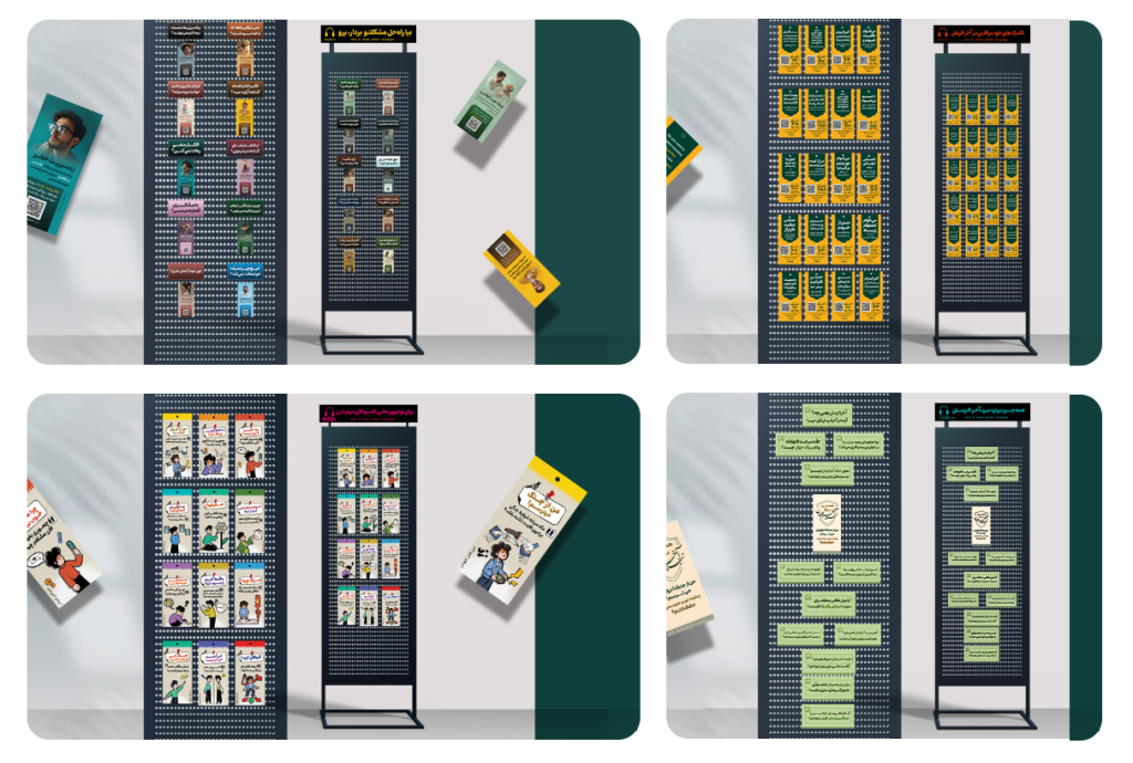 محصولات فرهنگی برای فروش شامل موارد زیر می باشد: کتابچۀ«چهارده سپر نوری در آخرالزمان» در سه نسخۀ عربی، با ترجمه انگلیسی و فارسی. محصول بعدی، استند کارتی«بیا راه حل مشکلتو بردار و برو» محصول سوم، استند کارتی«همه چیز درباره نبرد آخرالزمان» در سه نسخۀ عربی، انگلیسی، فارسی. محصول چهارم، استند کارتی«تکنیکهای خودمراقبتی در آخرالزمان» در سه نسخۀ عربی، انگلیسی، فارسی. و آخرین محصول، استند کارتی«سوالات مهم برای نوجوانانِ مهم» می باشد. محصول آخر جدیدترین محصولِ برنا منتظر(واحد نوجوان رسانه منتظر) است و به سؤالات خودشناسی نوجوانان پاسخ میدهد.